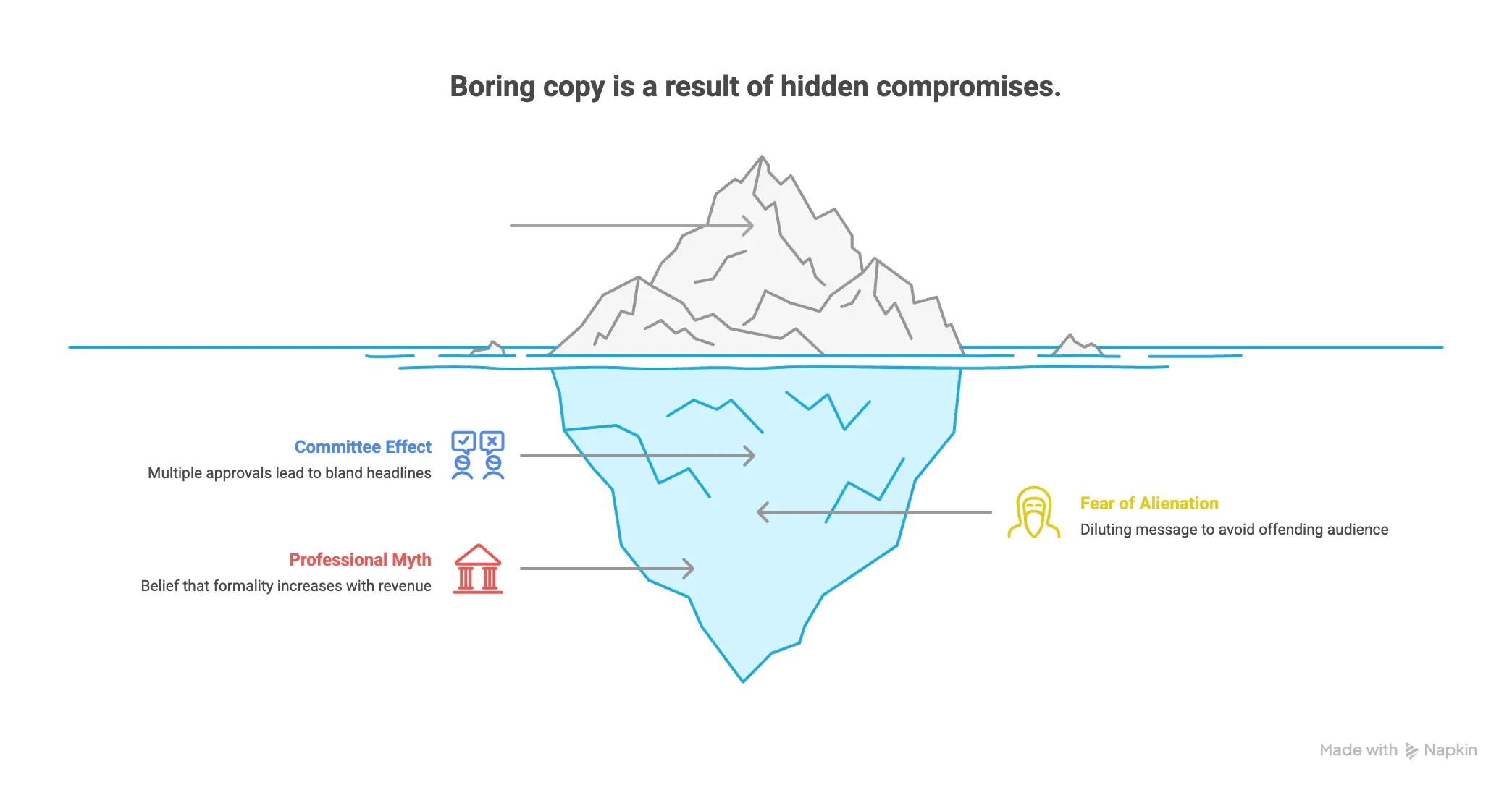 It rarely happens on purpose. No one sets out to write boring copy. It happens through a series of small, logical compromises.